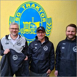 Über eine neue Trainingsjacke, die auch für die Regenzeit geeignet ist, freute sich das Trainerteam Leistner und Rödel. Überreicht wurden diese durch unseren Vorstand Kay Mateoschat. Sport-Frei...bald!